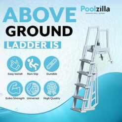 Poolzilla Pool Step Ladder for Above Ground Pools – Deck Mounted Ladder w/Wide Non Skid Platform – for 48’’ to 54’’ in. Above Ground Pools