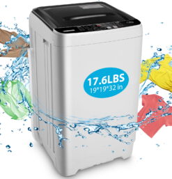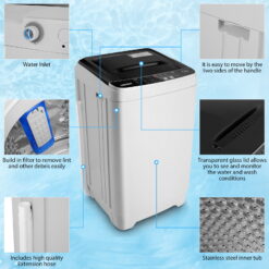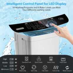 - Fully automatic and easy to use:Â This fully automatic portable washing machine has 10 programs and 8 water levels to choose from. You can quickly boot your device the way you like. Not only does it feature an LED display that shows exactly which process the machine is doing, but it also has a transparent lid that lets you view and monitor water conditions.