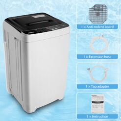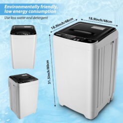 This practical washing machine with 10 programs, eight water level options, and an LED display is perfect for you. It has wash and spin functions, so you don’t need to buy an additional spin machine All functions and operations are easy to see at a glance, including water level/spin, program/delay, time setting, child lock, detergent, and program selection. You can select the right program and water level for different fabrics. Equipped with a faucet adapter to meet the needs of faucet connections. Side carry handle design, easy to carry.