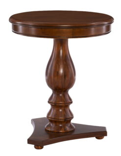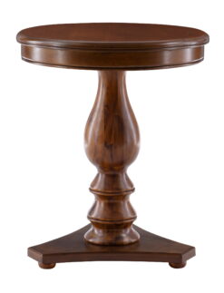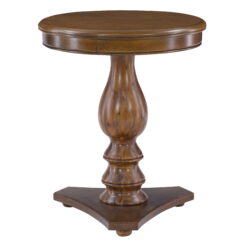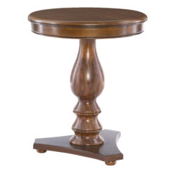This exquisitely elegant Powell Stanton pedestal table will gracefully blend into any room in your home. The beautiful, turned wood pedestal and triangular base adds a hint of flair. Pair with your favorite arm chairs for a cozy and comfortable room, or place bedside as a stunning nightstand. Available in an assortment of colors and finishes: Hazelnut Brown, Light Gray, Natural, and White. Table Dimensions: 20″ W x 20″ D x 24.5″ H. Product Weight: 28.67 lbs.