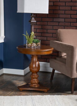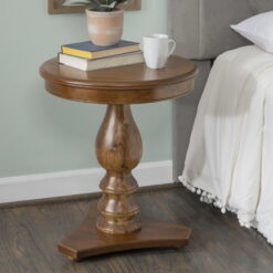 Powell Stanton Round Pedestal Indoor Accent Side Table, 24.5″ Tall, Hazelnut Brown