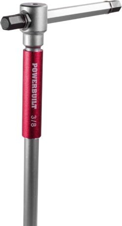 Powerbuilt 8 Pc SAE T-Handle Hex Allen Key Wrench Set w/ Speed Sleeves for Fast Spinning Action, Sliding Top Handle for “T” or “L” Shape, Long Shafts, Storage Rack, Auto, Bicycle, Moto – 941644 , Red