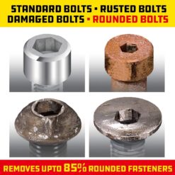 - Remove damaged, rusted and up to 85% rounded hex head bolts
