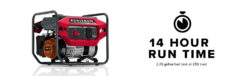 - 14 Hour Run Time 2.25 gallon fuel tank at 25% load
