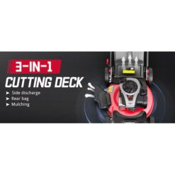 - 3-in-1 LAWN MOWER: side discharge, mulching, rear bag discharge