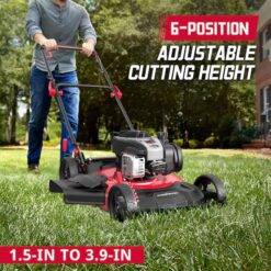 - ADJUSTABLE CUTTING DEPTH: 5-position height adjustment is from 1.18″ to 3″, suitable for all kinds of grasses