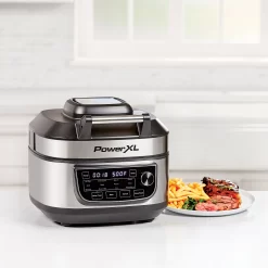 From PowerXL, makers of the #1 best-selling indoor grill, the 12-in-1 PowerXL Grill Air Fryer Combo is your ultimate mealtime assistant. Premium die-cast grill plate with air crisp technology provides effortless versatility and optimal cooking performance across 12 custom presets while saving you time and precious counter space. Lock in juices and flavor on your grilled proteins and veggies with char-grill marks, air fry fried foods to a golden crisp, slow cook your favorite soups and stews, and so much more. This 12-in-1 electric indoor grill and air fryer combo is also a programmable electric cooker with an easy-to-clean nonstick inner pot designed for the most efficient slow cooking, steaming, simmering, and sous vide. It’s even a perfect rice maker. Removable, dishwasher-safe parts for fast, effortless clean-up.