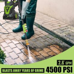 - [Outstanding Performance] Generates up to 4500 PSI of water pressure and 2.6 GPM of water flow for handling even the most stubborn grime quickly and effortlessly. N-COR pump is durable, non-corrosive and maintenance-free. 3 year warranty.