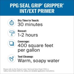 Our premium interior/exterior 100% acrylic primer is formulated to meet the performance requirements of the residential and commercial segments. SEAL GRIP Gripper primer is especially formulated to block most stains -water, smoke, ink, markers, and tannin. SEAL GRIP Gripper primer has exceptional adhesion to glossy surfaces. Also recommended as a whole house primer for use on properly prepared interior or exterior wood, masonry, plaster, wallboard, cement, brick, stucco, cement composition board, aluminum, and wall coverings.