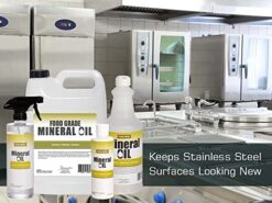 Premium 100% Ready to Use Food Grade Mineral Oil, 16oz Spray Bottle, Butcher Block and Cutting Board Oil – Sprayer Included. Food Grade Mineral Oil has 100’s of household and industrial uses such as: butcher block oil, cutting board oil, wood stain, soapstone oil, lubricant, bamboo cutting board oil, lubricating food processing machines, rust prevention for knives, stainless steel cleaner and many more. Mineral Oil will not break down and become rancid like vegetable oil. This is a food safe mineral oil that is colorless, odorless, and tasteless. One gallon (128 ounces).