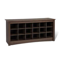 Store your shoes where you put them on with our Shoe Storage Cubbie Bench. Dual-purposed and versatile, this bench is a great addition to your foyer, mudroom, utility room or bedroom. Each of the 18 individual cubbies is spacious enough to hold a pair of size 13 men’s shoes, keeping them neatly stored and out of the way. It’s the perfect piece to keep your shoes organized.