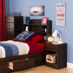 The Astrid Twin Bookcase Headboard is the ideal space-saving solution for any bedroom. The Headboard is complete with 4 side compartments to showcase your favorite photos, books, and knickknacks. Combine with Prepac matching twin storage bed, or use as a stand-alone headboard with any twin bed.