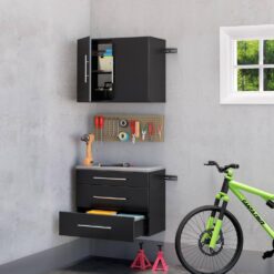 The HangUps 36 in. Upper Cabinet offers versatility for your ever changing storage needs in the garage, laundry room, office or workshop. The Upper Cabinet mounts securely to the wall with a heavy duty metal rail and hook system. The wall mounted feature ensures easy cleaning beneath the cabinets and protects your stored items from water and dirt. The HangUps Collection is constructed using laminated composite wood and features metal handles and adjustable hinges. This product ships ready-to-assemble and includes all hanging rails and fastening bolts. Add other cabinets from our HangUps Collection to create a storage system to convert any cluttered room into an organized space.