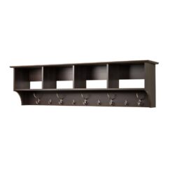 Prepac EEC-6016 Espresso 60 in. Contemporary Wall Mounted Coat Rack with 4-Shelves, Coat Hooks Wall Mount, Entryway Storage Solution