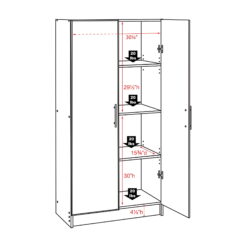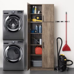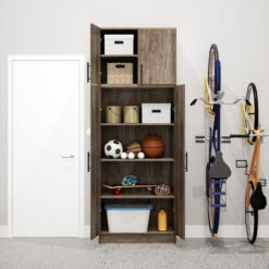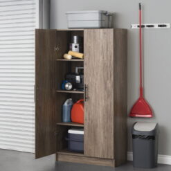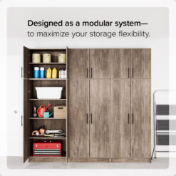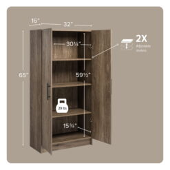 Turn any cluttered room into an organized space with the Prepac Elite Freestanding Storage Cabinet. This 16″ deep storage cabinet offers 34% more storage space than standard storage cabinets for convenient, versatile storage that helps you maximize the space in your garage, laundry room, kitchen, office, or workshop. Practical and stylish, the cabinet is designed with 2 soft-edge doors on adjustable 6-way European-style hinges and 2 adjustable shelves and 1 fixed shelf all in an elegant drifted gray laminate finish with matte black metal handles. It ships flat-packed and ready-to-assemble upon delivery and includes an instructional booklet for easy assembly. Constructed from non-toxic, CARB-2 compliant, laminated composite woods, this high-quality storage cabinet provides long-lasting durability to withstand years of quality organization. This standing storage cabinet measures 16″ D x 32″ W x 65″ H with an internal size of 15.75″ D x 30.25″ W x 59.5″ H for practical standalone storage, or it can be paired with other Elite storage cabinets for even more space.