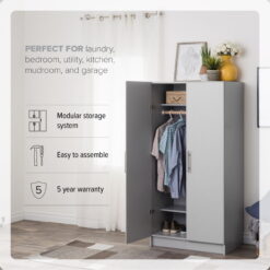 Prepac Elite 2-Door Freestanding Wardrobe Cabinet, 20″ D x 32″ W x 65″ H, Light Gray
