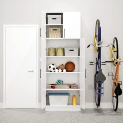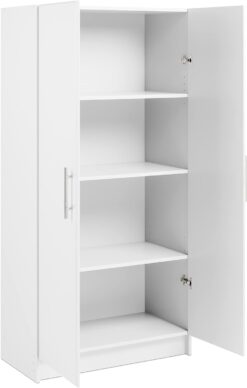 Prepac Elite Functional Tall Shop Cabinet with Adjustable Shelves, Simplistic Freestanding 2-Door Garage Cabinet 16″ D x 32″ W x 65″ H, White, WES-3264
