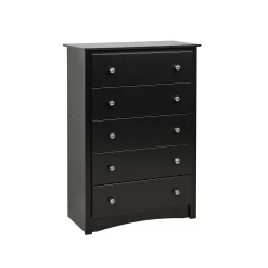 Prepac Sonoma 5 Drawer Wooden Dresser Chest, 16″ x 31.5″ x 45.25″, Black