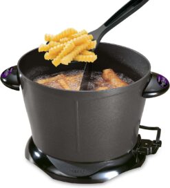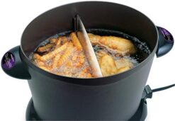 - Handy divider allows 2 different foods to fry at the same time without intermingling