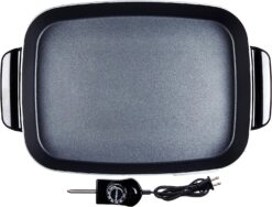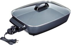 - Convenient! Big 16/inch pan has high sidewalls for extra cooking and serving capacity, plus it’s more efficient than a range burner or over. Heavy cast aluminum pan is virtually warp-proof