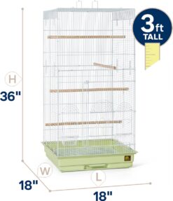 The Prevue Pet Products Tall Tiel Bird Cage is designed to give your feathered friend plenty of space to fly and play. This roomy cockatiel cage features an extra-tall design to keep your best friend extra comfy. The large front opening door gives you easy access to the cage, and its top carrying handle makes it easily portable. It includes two plastic cups and four wood perches. It also features a bottom grille that’s removable, and a tray that slides out for super easy cleaning. This cage is suitable for parakeets, cockatiels and other small- to medium-sized birds.