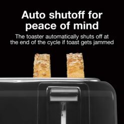 - AUTO SHUTOFF FOR PEACE OF MIND: The toaster automatically shuts off at the end of the cycle if toast gets jammed