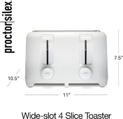 Proctor Silex 4 Slice Toaster with Extra Wide Slots for Bagels, Cool-Touch Walls, Shade Selector, Toast Boost, Auto Shut-off and Cancel Button, White (24214PS)