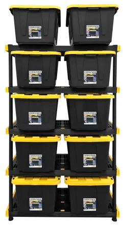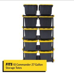 - Storage system – holds 10 Commander 27 gallon totes