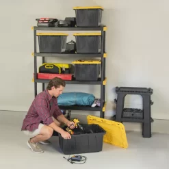 The Commander by Project Source 20x48x72, 5-tier ventilated shelf is designed to handle your toughest storage needs. The ventilated plastic is durable, easy to clean, mold resistant and made from recycled material. Each shelf has a 200lb weight capacity when evenly distributed to hold most of your storage items. Provided wall mounting brackets help keep the unit stable when loaded with weight. The 4 adjustable feet help prevent tipping when placed on uneven surfaces. This 20×48 5-T Commander by Project Source shelf is ideal for organizing your garage, shed, or workspace whether loose items or stored in your Commander by Project Source totes.