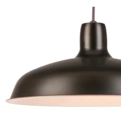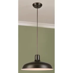 The Project Source 15.87-in bronze barn single warehouse pendant is a classic pendant that can be used in an industrial or modern design home setting. The fixture also is used in hospitality application decors (i.e. Restaurant). It requires a 150 watt A19 bulb, 23 watt CFL or LED equivalent (not included), and is dimmable for desired illumination levels when used with dimmable bulb. The cord length adjusts up to 96 In. giving you flexibility in the height of the fixture. UL listing demonstrates this product has met minimum requirements of the widely accepted product safety standards.