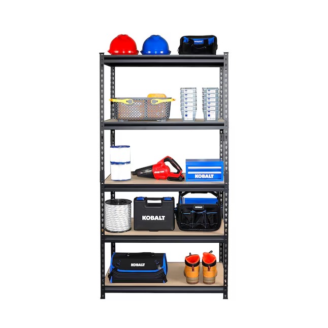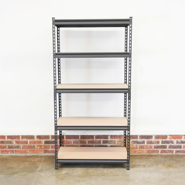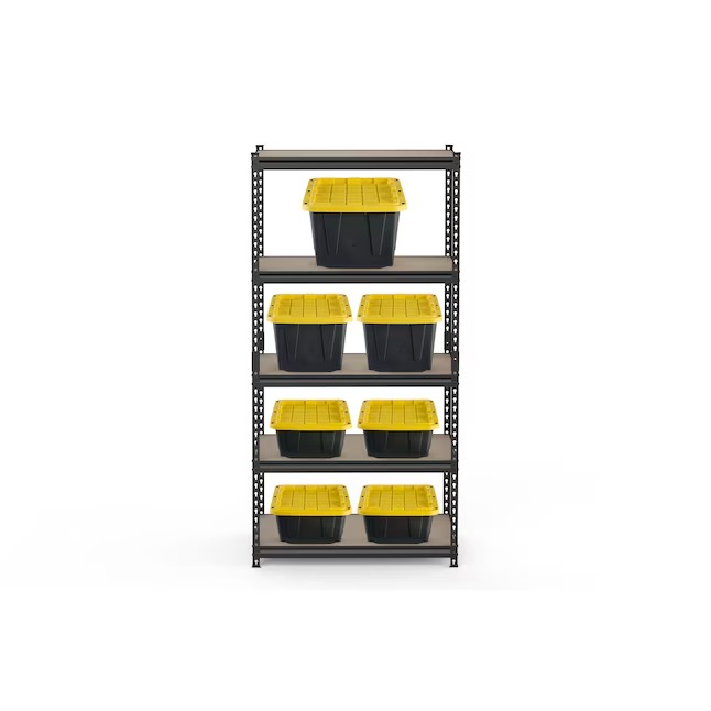 Project Source Particleboard Heavy Duty 5-Tier Utility Shelving Unit (36-in W x 18-in D x 72-in H), Black, (800-lb Capacity Per Shelf)