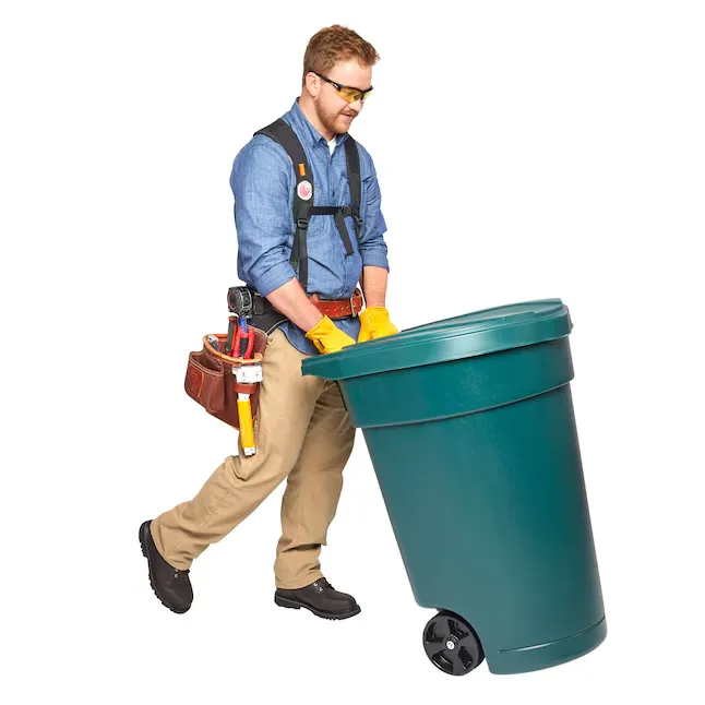 Project Source TB0135 50-Gallon Green Plastic Wheeled Outdoor Hinged Lid Trash Can