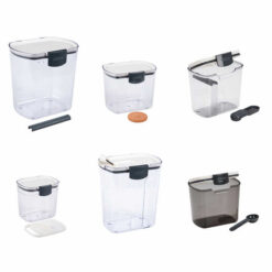 The ProKeeper 6-piece Bakers Storage Set includes storage containers for flour, granulated sugar, brown sugar, powdered sugar, coffee and a mini keeper. Each ProKeeper features its own specialized, integrated tool. This set includes six stackable food storage containers with easy-catch lids and silicone seals for airtight storage to keep your kitchen organized and your food fresher longer.