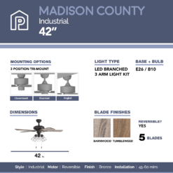 - Prominence Home 50588-35 Madison County Industrial 42-Inch Aged Bronze Indoor Ceiling Fan, Cage LED Cage Barnwood/Tumbleweed Blades