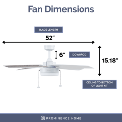 Prominence Home Memphis 52″ White Modern Ceiling Fan with 4 Blades, Integrated LED Light Kit, Pull Chains & Reverse Airflow