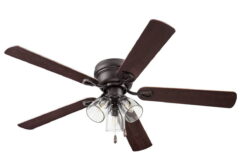 Prominence Home Renton 52″ Bronze Flushmount Ceiling Fan with 5 Blades, Multi-Arm Clear Glass Light Kit, Pull Chains & Reverse Airflow