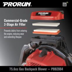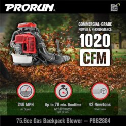 PRORUN PBB2884 75.6-cc 2-cycle 1020-CFM 240-MPH Gas Backpack Leaf Blower
