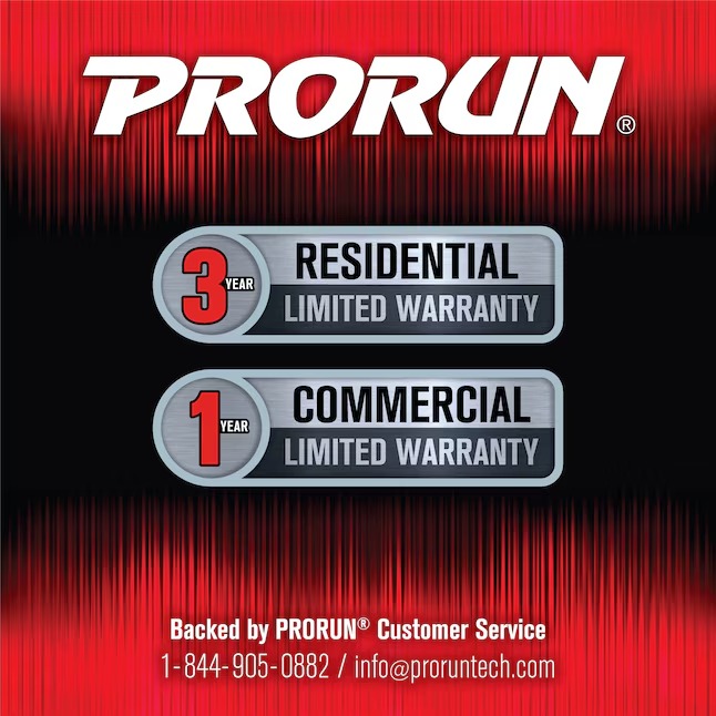 - WARRANTY: Backed by PRORUN Limited Warranty (3-Year Residential, 1-Year Commercial)