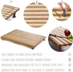 - INCLUDES JUICE GROOVES: This large bamboo stovetop cover with detachable legs features deep juice grooves to prevent spills and cross-contamination; perfect for preparing meats, vegetables, and more in one place
