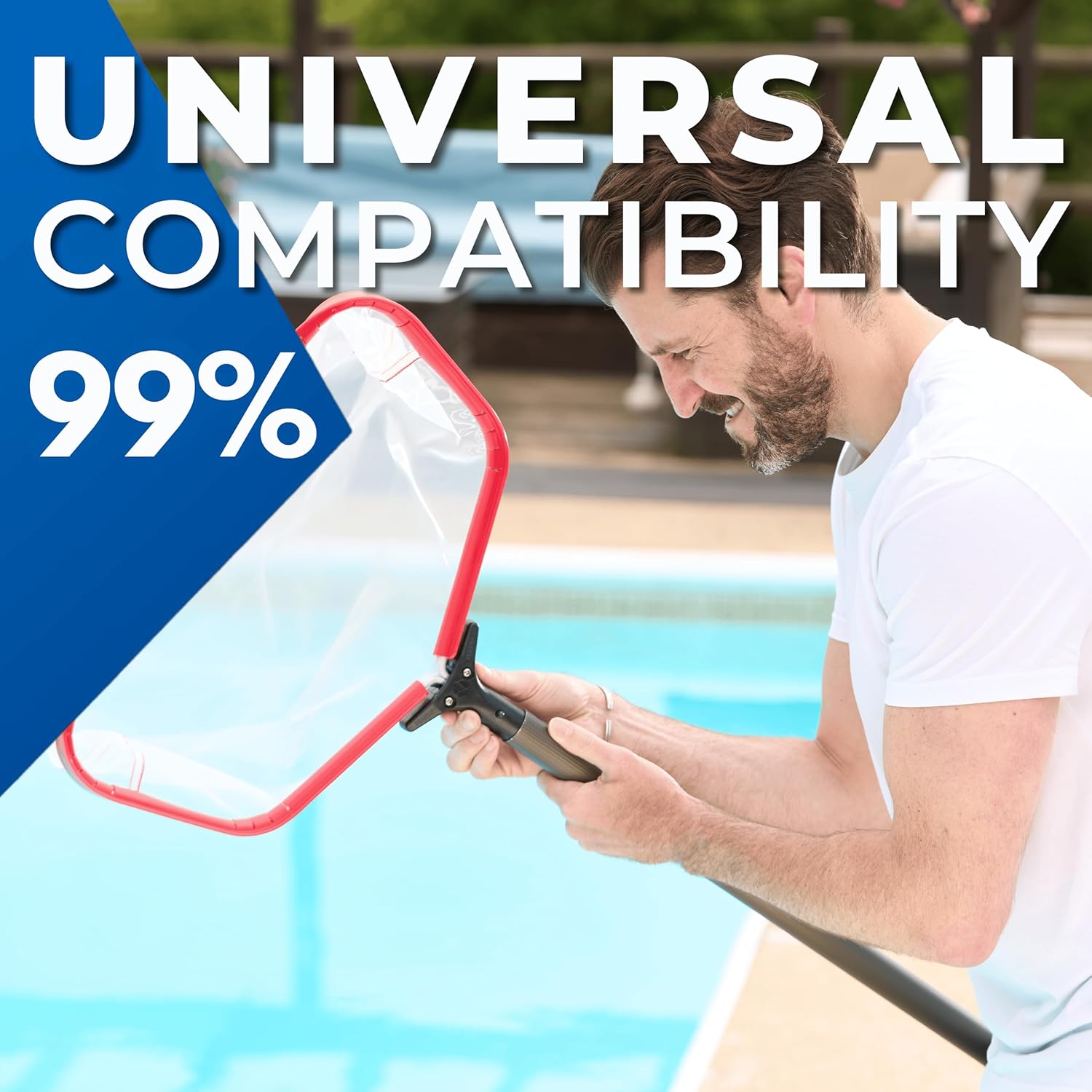 - 𝗦𝗨𝗣𝗘𝗥 𝗦𝗧𝗥𝗢𝗡𝗚 𝟭𝟴” 𝗔𝗟𝗨𝗠𝗜𝗡𝗨𝗠 𝗔𝗟𝗟𝗢𝗬 𝗙𝗥𝗔𝗠𝗘 – It won’t bend, twist or break under load. Tightly secured within “winged” handle for additional stability. Our swimming pool leaf catcher handle easily connects to a standard size telescoping pool pole with built-in quick connect clip. Keep your swimming pool cleaner with ProTuff swimming pool cleaning tools.