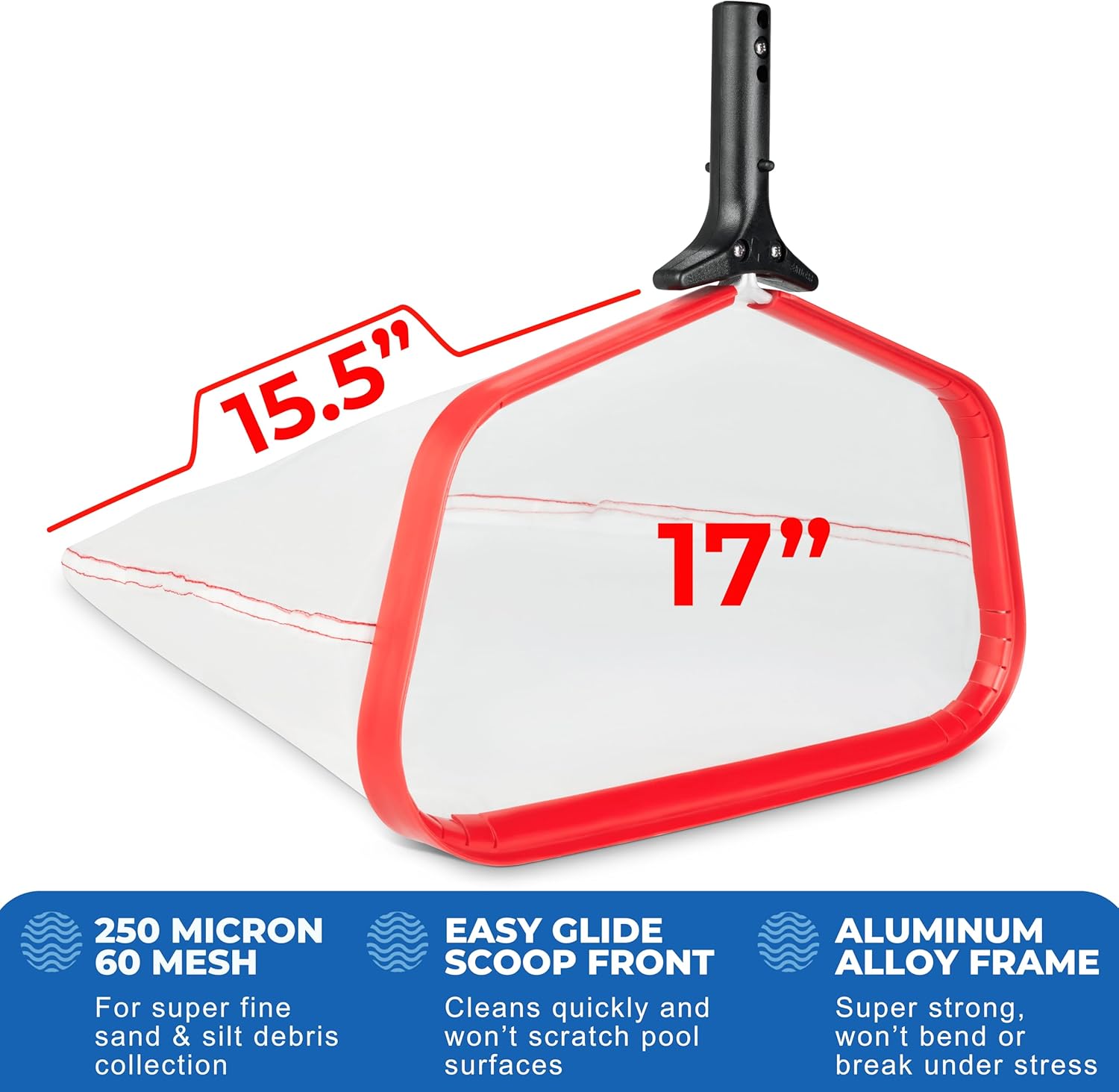 ProTuff 17″ SiltNet Pool Skimmer – Comes Ultra-Durable Fine Mesh Net for Silt & Debris – Heavy-Duty Aluminum Frame, Quick-Connect Pole Attachment – Deep Bag for Easy Cleaning