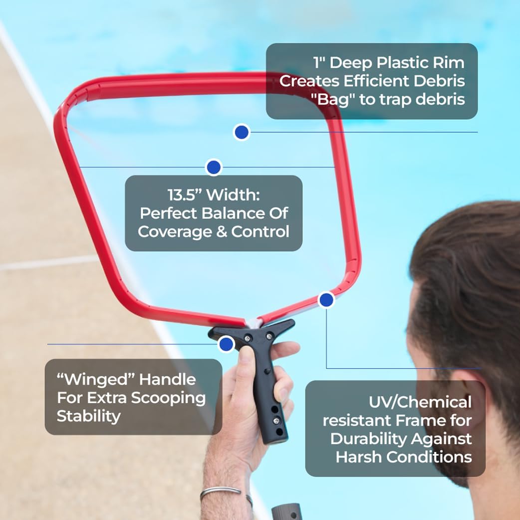 - QUICK-CONNECT FOR EASY USE – Designed for convenience, this pool net with pole attachment features a universal clip, making it compatible with most standard pool poles. Whether you need a pool skimmer net with pole for your in-ground or above-ground pool, this tool offers effortless maneuverability.