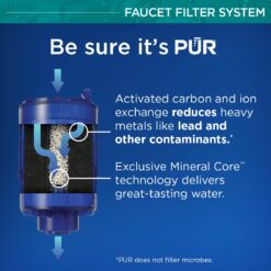 - SUPERIOR WATER FILTRATION: PUR faucet water filters reduce over 70 contaminants, including lead & chlorine, by using activated carbon & ion exchange. Using a PUR water filter for tap water is more affordable than bottled water, save up to $1, 000 per year