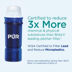 - 3-in-1 POWERFUL WATER FILTRATION for better tasting drinking water. PUR PLUS filters are NSF certified to reduce microplastics, chlorine, and other chemical & physical substances that cause bad taste and odor in your drinking water.