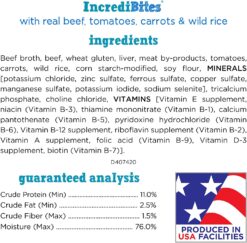 - Beneful IncrediBites variety pack made with real beef, chicken or salmon and real vegetables you can see formulated specifically for small dogs