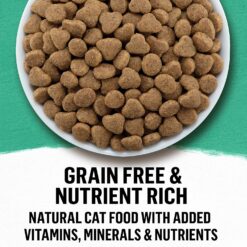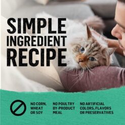 - Simple ingredient, grain free cat food with no corn, wheat, soy, poultry byproduct meal, or artificial colors, flavors or preservatives
