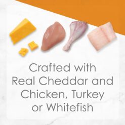 Show your cat that nothing’s too good for her when you feed her this Fancy Feast Delights with Cheddar Grilled Variety Pack Canned Cat Food. This savory collection of gourmet food for cats includes tempting choices for your feline friend, with plump morsels of grilled meat combined with real aged cheddar cheese and covered in thick gravy to put her taste buds into overdrive. This delectable cat food features three varieties: Grilled Chicken & Cheddar Cheese Feast in Gravy, Grilled Turkey & Cheddar Cheese Feast in Gravy, and Grilled Whitefish & Cheddar Cheese Feast in Gravy. Each recipe provides 100% complete and balanced nutrition for adult cats while offering a culinary adventure that’s fit for feline royalty. Your cat deserves the very best, and this Fancy Feast cat food is the gold standard in the industry, with premium top-shelf ingredients you can feel good about giving her and that she’s more than happy to eat.
