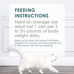 Feed an average size adult cat 1 can per 3 pounds of body weight daily. Feed up to twice this amount to kittens. Pregnant or nursing cats may require two to four times their normal feeding. Refrigerate unused portion.