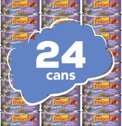 Purina Friskies Gravy Wet Cat Food, Shreds Turkey & Cheese Dinner – (24) 5.5 oz. Cans