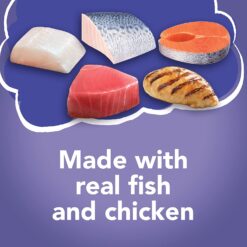 Give your pal a bowlful of kitty-approved flavor and nutrition with the Friskies Pate Seafood & Chicken Variety Pack Canned Cat Food. These tasty pate recipes feature nutritious real meat, and are packed with everything your cat needs to stay looking and feeling his best, like protein, antioxidants and healthy omegas. Plus, the formula is enhanced with vitamins, minerals and essential taurine for nose-to-tail well-being in every bite. Since it’s made with plenty of moisture, it also provides essential hydration to help support urinary health. So open up the easy pull tab and turn mealtime into yum time.
